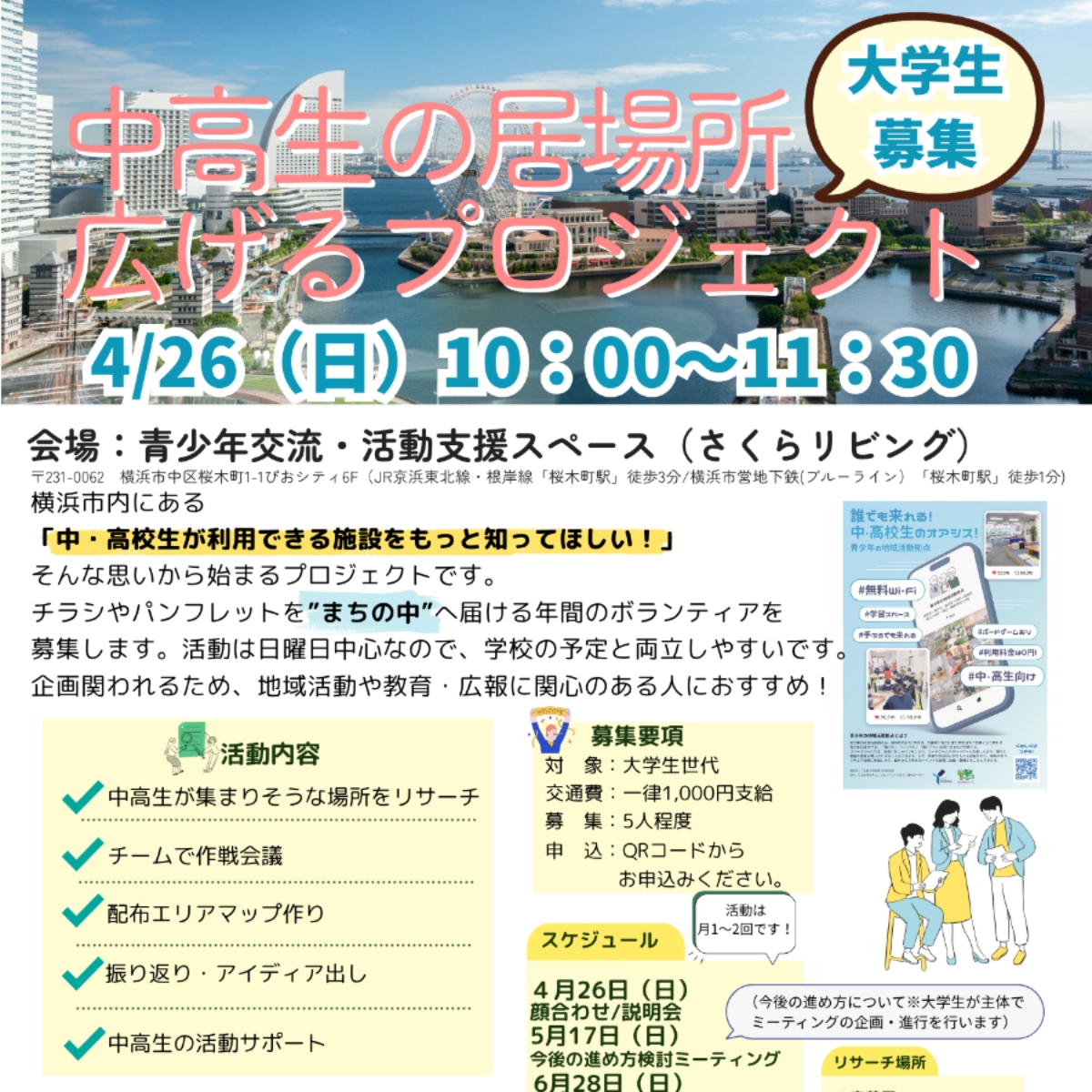 【大学生世代募集】中高生の居場所広げるプロジェクト!