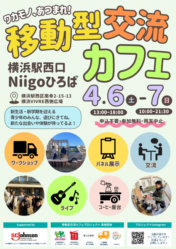 公益財団法人よこはまユースではジョンソン株式会社様よりご支援をいただき、横浜市内で「移動型交流カフェプロジェクト」を展開しています。