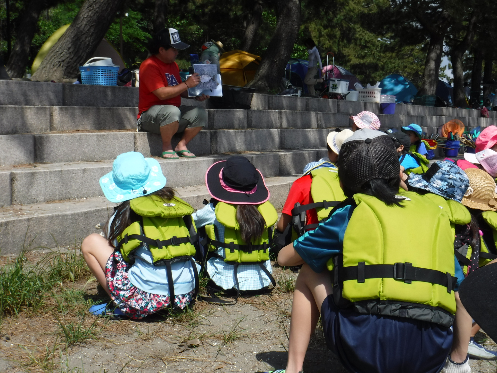 活動前に海の生き物の解説や、気をつけなければいけない危険な生き物のお話を聞いた後、