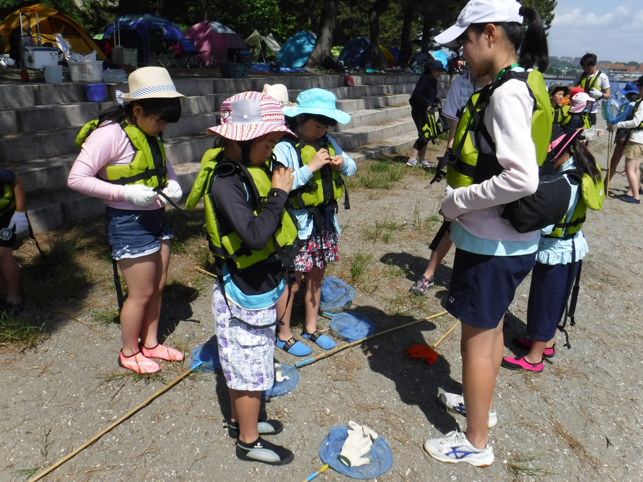 チャレンジキャンプ最後のプログラムは、干潟で海の生き物観察をしました。