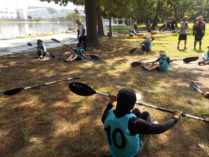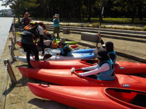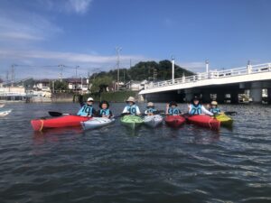 小学生3人・中学生1人・保護者3人が参加し、親子でカヌー体験を行いました。当日はすっきりと晴れ、波も穏やかで、安心して漕ぎ進められる絶好のコンディションでした。