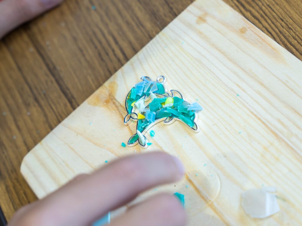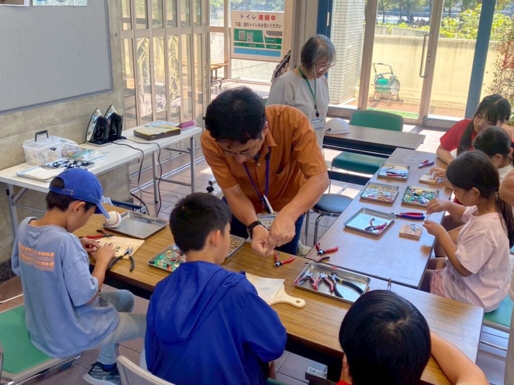 貝殻や再利用素材を使ったクラフトづくりでは、親子で相談しながら作品を仕上げる光景が広がり、