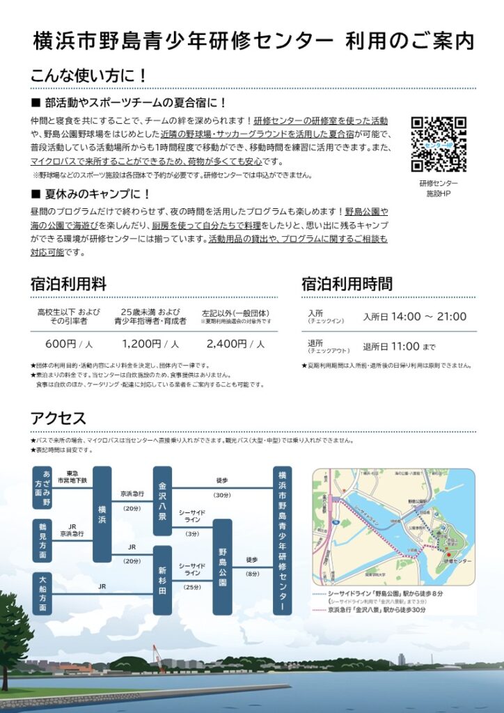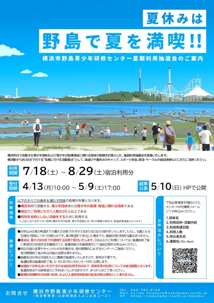横浜市野島青少年研修センター 2026年度夏期利用抽選会の受付について
