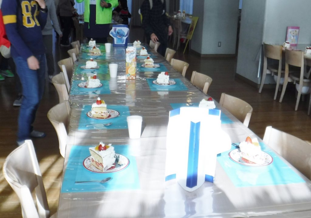 ゲームを終えて食堂に戻った子どもたちの目に飛び込んできたのは、大きなケーキでした。