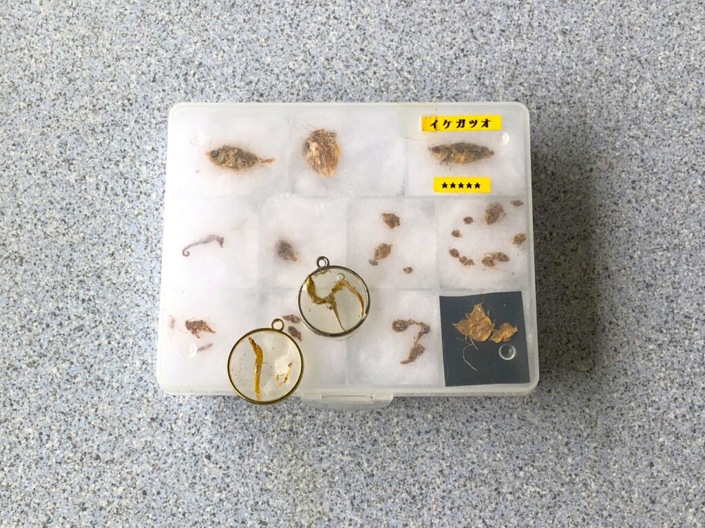 沢山のちりめんじゃこの中から宝探しのように生き物観察します。じっくり観察することで生き物の様々な個性を発見できます。お気に入りが見つかればキーホルダーにして持ち帰れます。