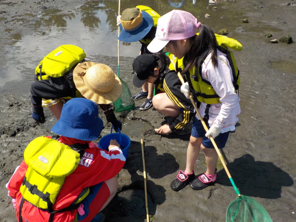 そこに住む生き物を探します。自然環境や生き物の生態を知ることができ、時季によっては潮干狩りも楽しめます。
