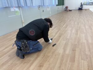 夏休み前の4日間をつかって床のクッションシートの張り替え工事を実施しました。