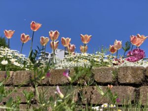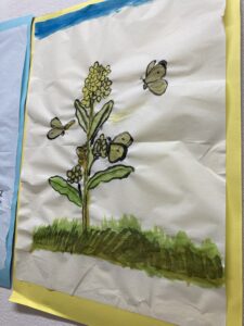 宮谷小学校 放課後キッズクラブ 春ですね。 春ですね。 宮谷小学校の隣の公園では、チューリップがとてもきれいです。 こちらは、プログラムで行っている水墨画。 菜の花にちょうちょがとまりにきていて、春を感じます。 また、みんなの「2026年の決意」も掲示しています。 決意をあらたに、今年度もがんばりましょう。(ほどほどにね!)