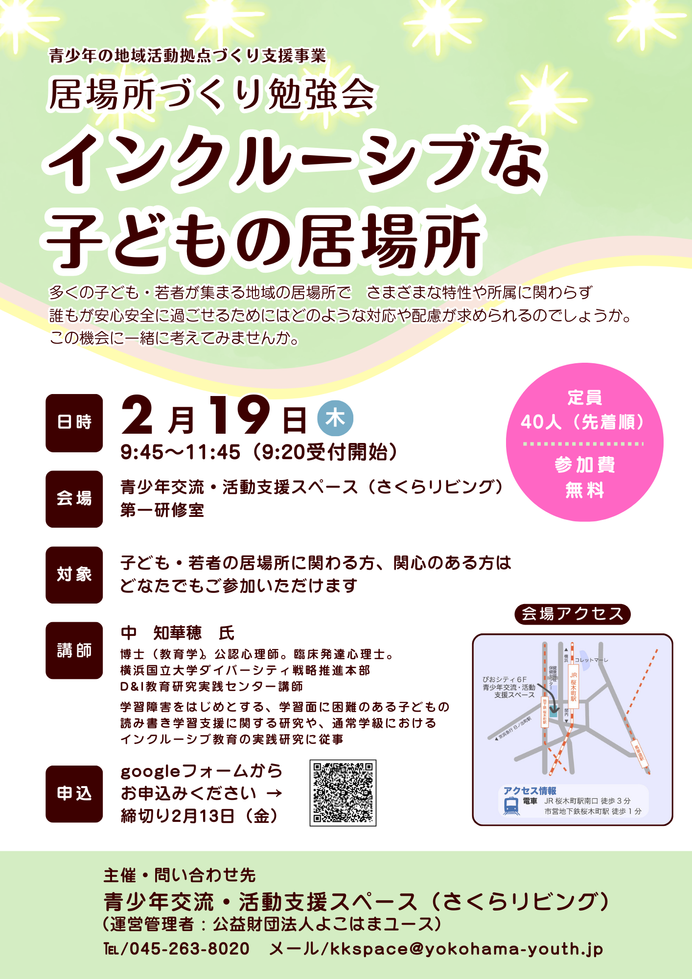 【さくらリビング】勉強会「インクルーシブな子どもの居場所」参加者募集